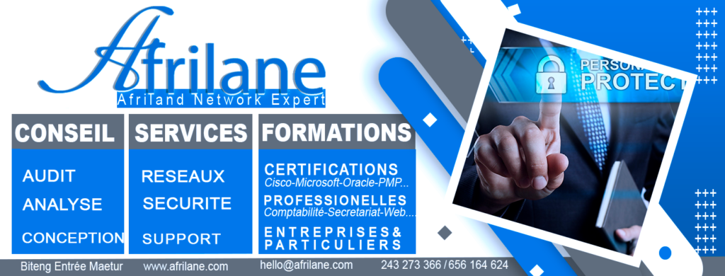 AFRILANE intervient sur des projets de mise en place ou d'évolution d'infrastructures réseaux ou du système d'information, elle assure également l'intégration d'une large gamme de solutions informatiques dans les domaines du mobile, de la sécurité, de l'optimisation des data centers, du cloud computing, de la virtualisation et services collaboratifs